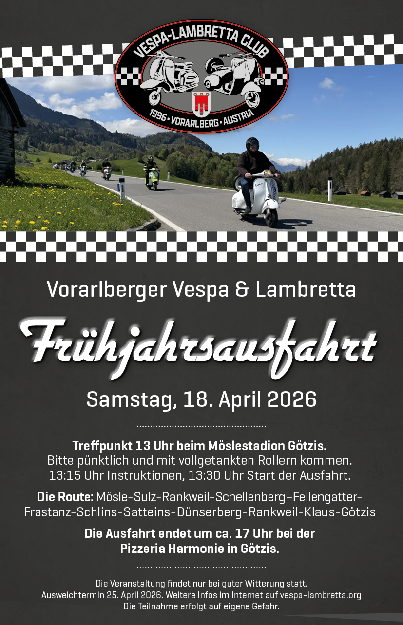 Seit 1996 veranstalten wir Ausfahrten, Treffen und Events um die italienischen Kultroller Vespa und Lambretta.